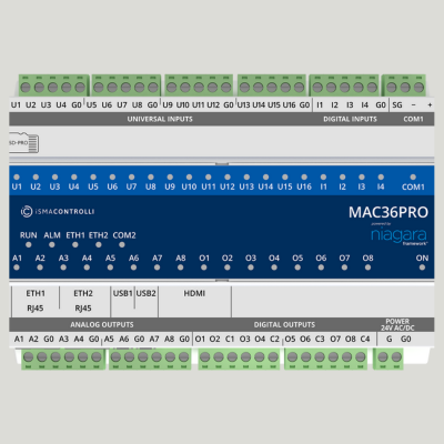 iSMAAbout the product The iSMA-B-MAC36NL is Niagara controller with 36 onboard IO and license of 500 points and two RS485 port. If more points are n...