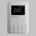 Control Point wall panel with 2,6" LCD display, buttons for navigation and temperature setpoint. Built-in temperature sensor. Communication Modbus RTU or BACnet MS/TP. Power supply 24 V AC/DC.